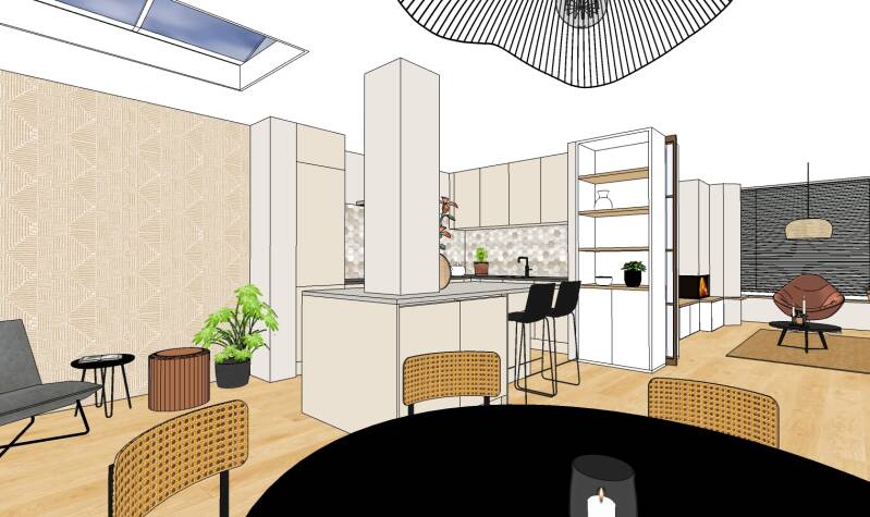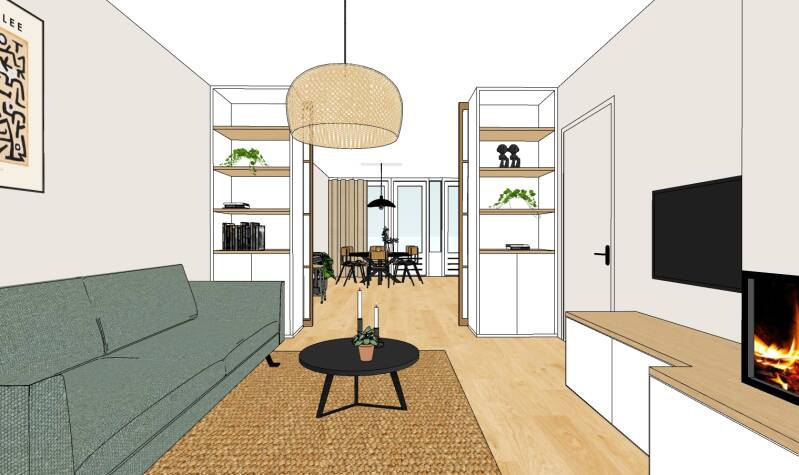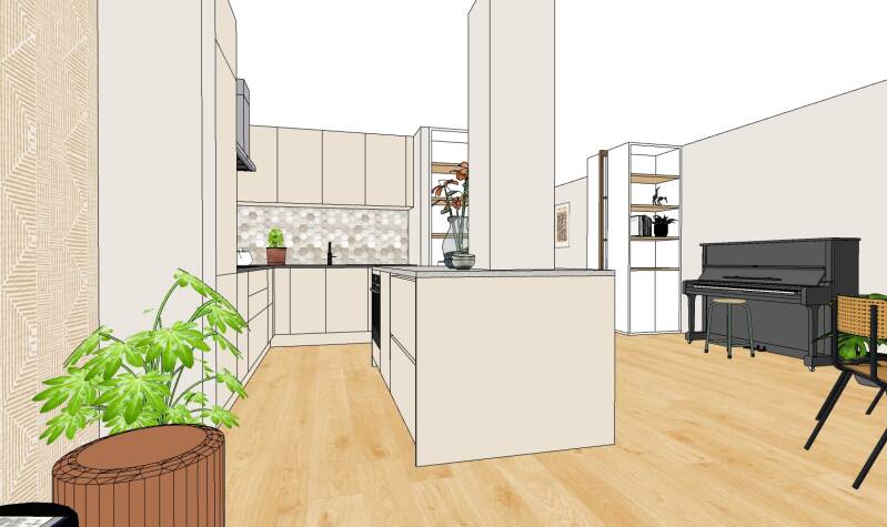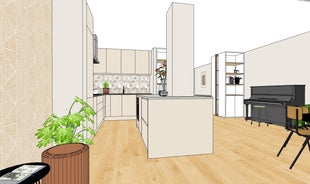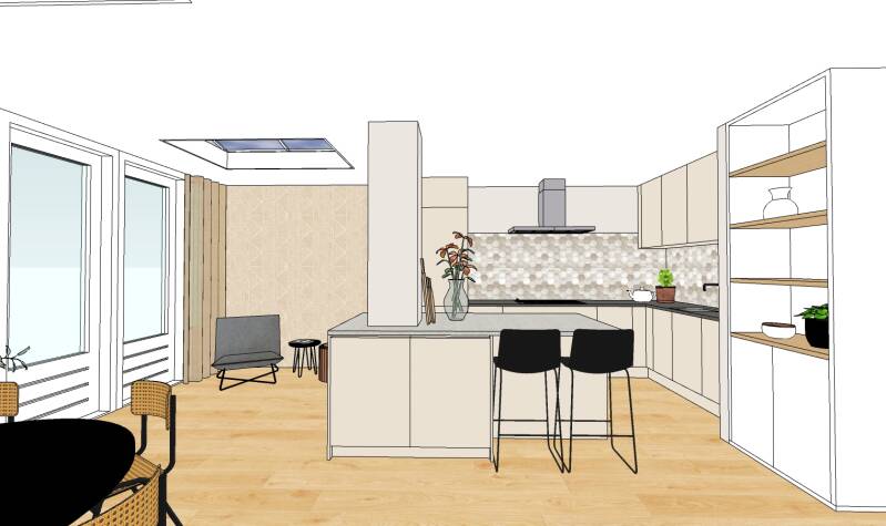 Een tussenwoning waarbij een aanbouw wordt gerealiseerd vraagt om een interieuradvies voor de gehele benedenverdieping. Door de aanbouw krijgt het achterste gedeelte van de woning meer ruimte en daarbij een ruimere (leef)keuken en eetkamergedeelte. Er is gekeken naar de juiste indeling voor een werk/keukeneiland in combinatie met de bestaande keuken. Daarbij - met als uitgangspunt het sfeerbord - een meubeladvies en kleur- en materiaaladvies.