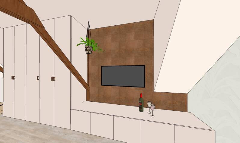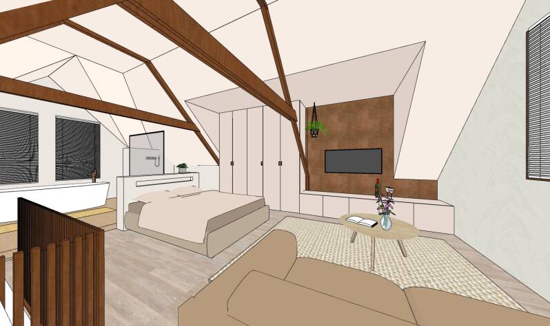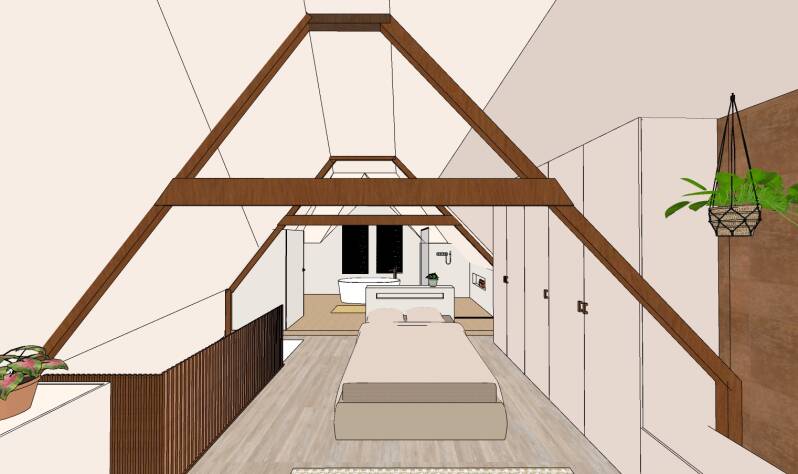 Voor de zolderverdieping waren zij op zoek naar een indelingsplan voor een slaap- en loungegedeelte. Ook een badkamer wordt op deze verdieping gerealiseerd. Alles in één ruimte, multifunctioneel!
