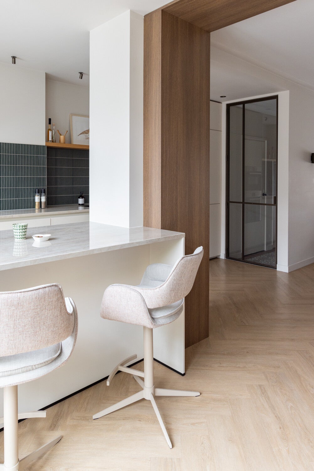 Voor een bestaande woning in Breda wordt een indelingsadvies gegeven, waarbij ruimte en verbinding een belangrijke rol speelt. De woning bestaat uit verschillende hoogtes en is in het midden van de ruimte voorzien van een pilaar door een eerder uitgevoerde aanbouw. Door een moderne en-suite te creëren voor deze karakteristieke woning, ontstaat een eigentijdse en bijzondere indeling die volledig past bij de bewoners.